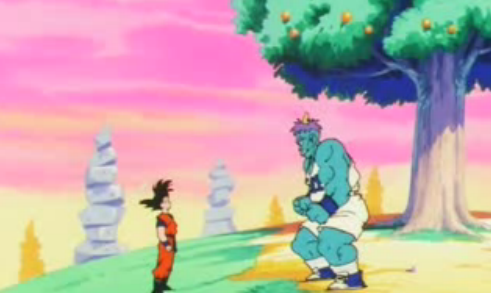 Goku se encuentra en el infierno, donde descubre que ese árbol encontrado pertenece a Enma-Sama. Dos de los habitantes del lugar, Goz y Mez, buscan evitar que Goku tome algun fruto, por lo que lo retan a una carrera; si él gana podrá comer un fruto. Para sorpresa de ambos, Goku gana la carrera, por lo que lo llevan a un supuesto atajo hacia el Camino de la Serpiente. Sin embargo, a su pesar, este atajo lo regresa con Enma-Sama, por lo que debe comenzar a recorrer el camino desde el comienzo otra vez.
