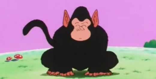 Goku finalmente llega al planeta de Kaio-sama, pero lo confunde con un mono llamado Bubbles.